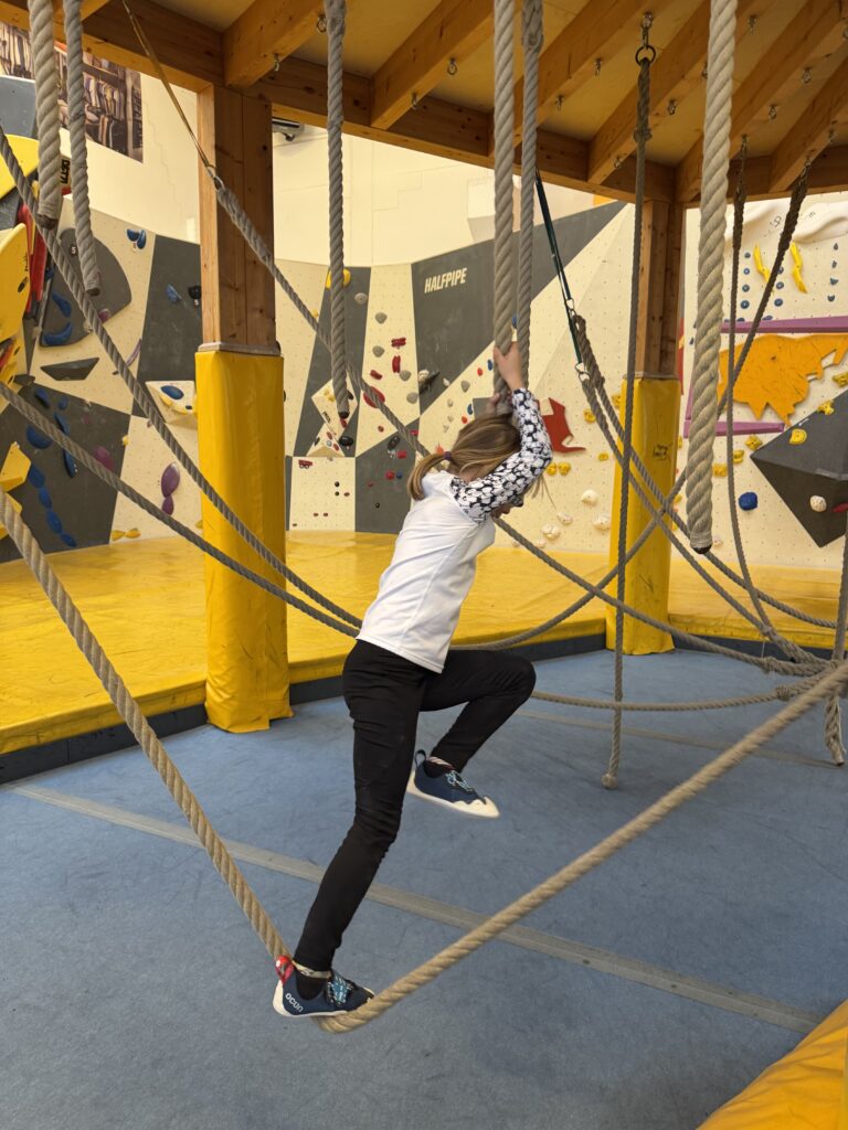 Hier können Kinder spielerisch erste Bouldererfahrungen sammeln. Weiche Matten, kindgerechte Routen und viele kleine Spielmöglichkeiten sorgen für Spaß und Bewegung ohne Druck.